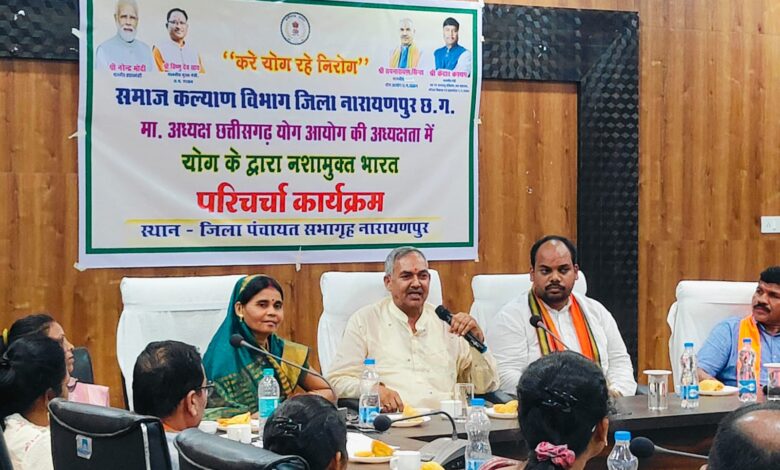 उक्त योग की परिचर्चा में नारायण मरकाम, अध्यक्ष, जिला पंचायत नारायणपुर, इन्द्रप्रसाद बघेल, अध्यक्ष नगरपालिका परिषद् नारायणपुर, संध्या पवार अध्यक्ष भारतीय जनता पाटी, तथा गायत्री पीठ, भारत स्वाभीमान मंच, पंतजली योग पीठ नारायणपुर, विहंगम योग, करूणा पाउंडेशन नारायणपुर के सदस्यगण उपस्थित थे। अन्त सभी मानननीयों के द्वारा नशामुक्त का संकल्प भी लिया गया ।